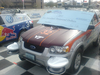Not to mention the team has received an overwhelming number of emails and calls from across the globe in congratulation. Thank you to everyone for your support. As a team, our goal is to further the state of the technology in this field, and build a legacy for robotics research at Virginia Tech. Future generations will benefit from the ground work we have laid here.On a lighter note, the team finally got a chance to relax the last couple of days in California. Tired of letting cars drive themselves, we headed straight for a go-kart race track. After working with the same people for two weeks, lets just say there was some tension to get out. There was plenty of "friendly" contact- we only broke two of the go-karts. We finished the night off with some Dave & Busters, followed up by In & Out Burger, animal style, mmmm....